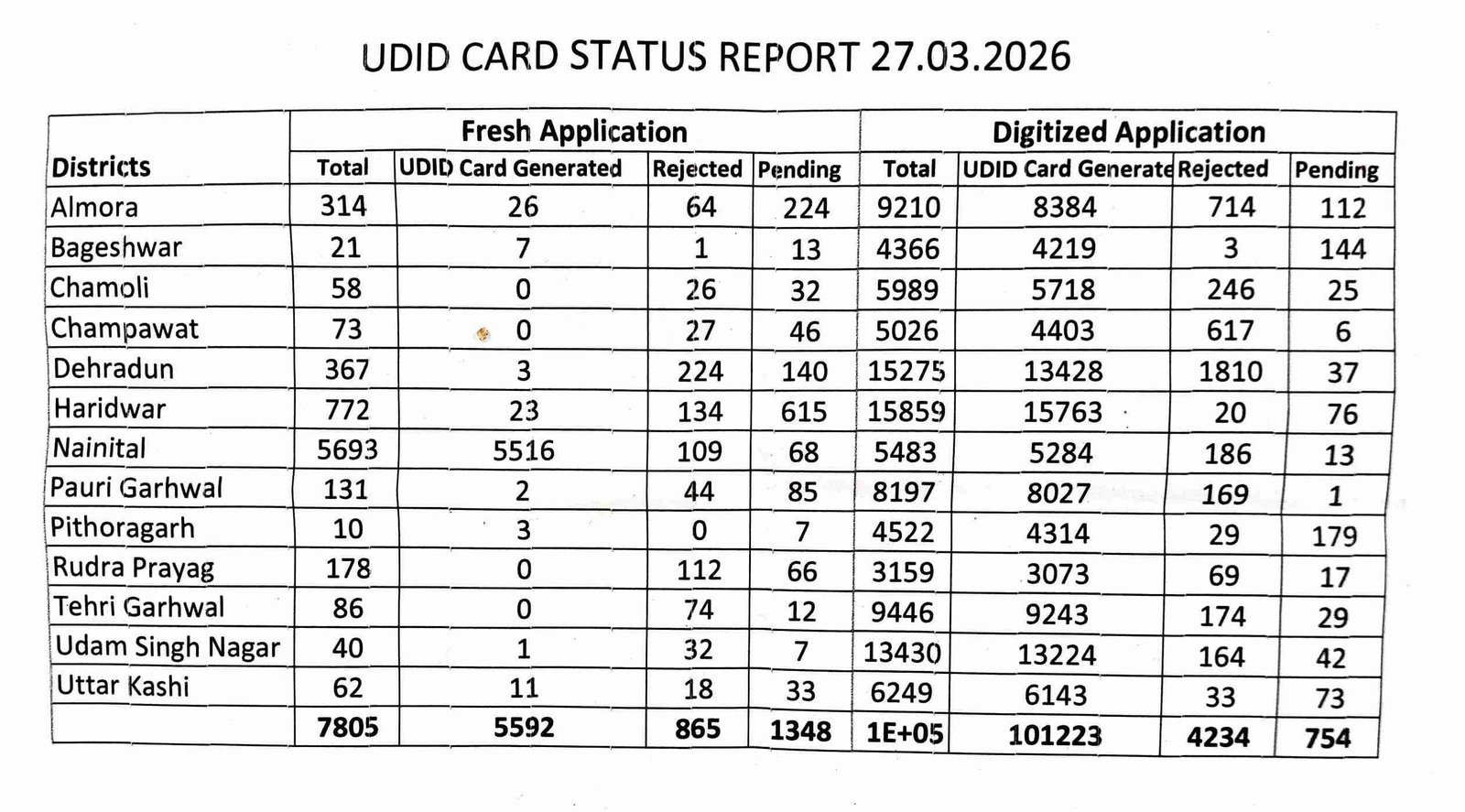 - भारत सरकार द्वारा संचालित दिव्यांगजनों हेतु विशिश्ट पहचान पत्र (UDID) योजना से दिव्यांगजनो को लाभान्वित करते हुए राज्य में अब तक कुल 92042 दिव्यांगजनों को यू0डी0आई0डी0 कार्ड निर्गत हुए।